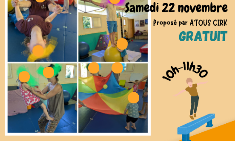 Atelier découverte du cirque pour les enfants de 3 à 6 ans, proposé par A Tous Cirk.