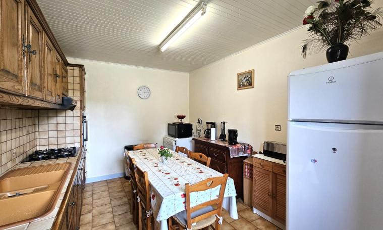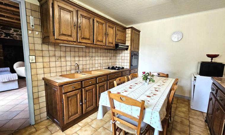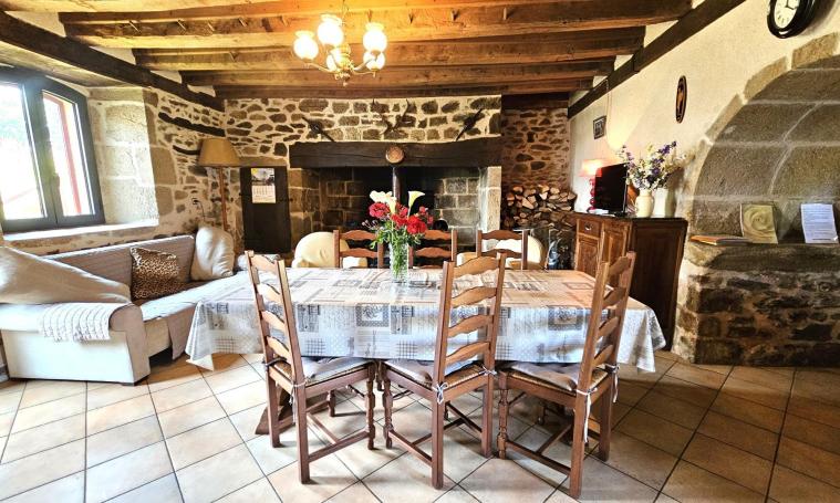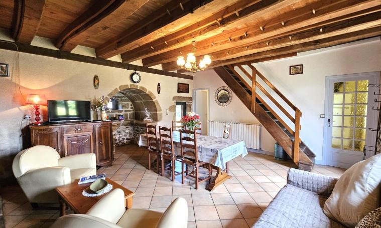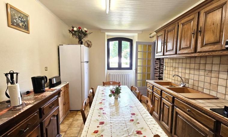 Detached cottage set in 1400 m² of land 3 km from the village. It offers a breathtaking view of the village below. Altitude 450 m. This charming character house has been entirely renovated in the traditional style, with stone walls, slate roof, exposed beams, "Cantou" and "Bassière". Nearby: trout rivers, numerous hiking and mountain bike trails.