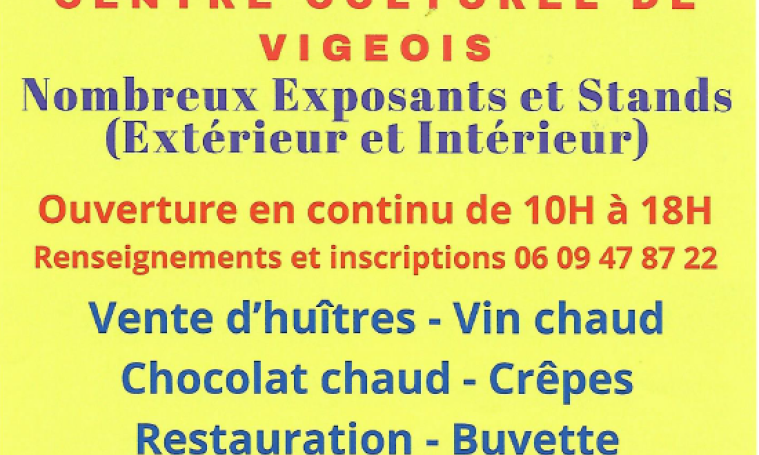 Nombreux stands et exposants en intérieur et extérieur, buvette, vin et chocolat chaud, crêpes. Vente d'huîtres.