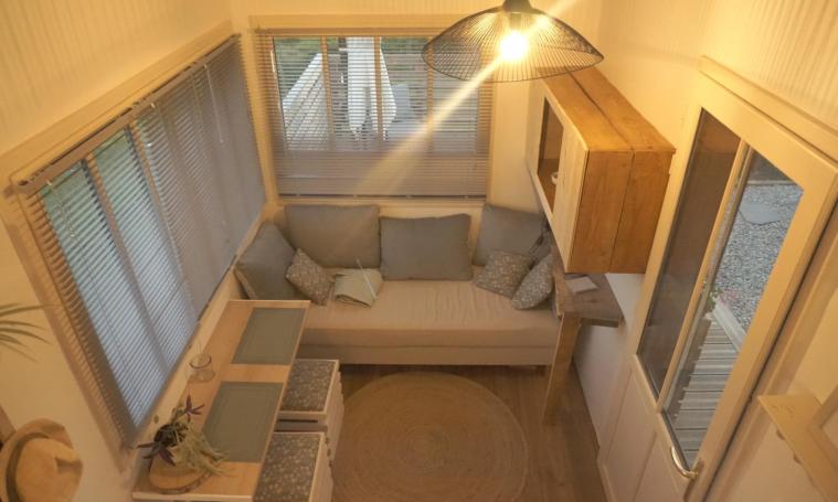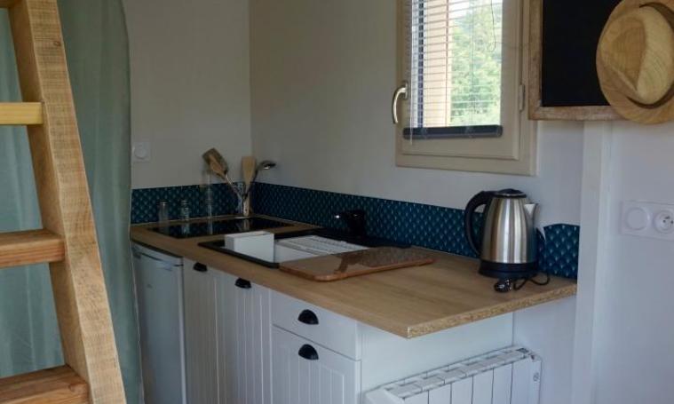 Tiny house - fixed - designed and built by its owners with many natural materials. Optimal, ergonomic layout to get rid of the superfluous, large openings to nature and a beautiful exterior with a breathtaking view of Turenne castle. Quiet, surrounded by the Corrèze countryside and with two sheep and a few chickens as neighbors!