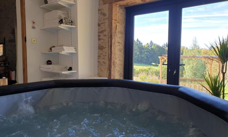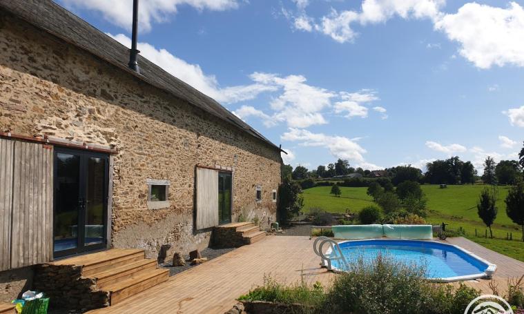 Sylvie and Thierry welcome you to their superb, fully-renovated barn in the heart of the Corrézienne countryside, on a hectare of land, with the charm of a brook providing freshness (rediscover nature and its wildlife), calm and relaxation assured. Located 10 minutes from Lubersac and Arnac Pompadour. Swimming pool. Picnic area (dining area in natural wood, panoramic view of the park and pool). int spa available all year round