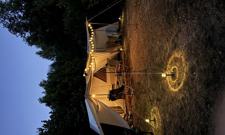 Part of the land and the small wood have been left in their natural state. The site offers 25 pitches, including 2 chalets, 1 mobile home, 1 hobbit house, a gypsy caravan and two bell tents on wooden terraces.