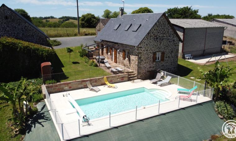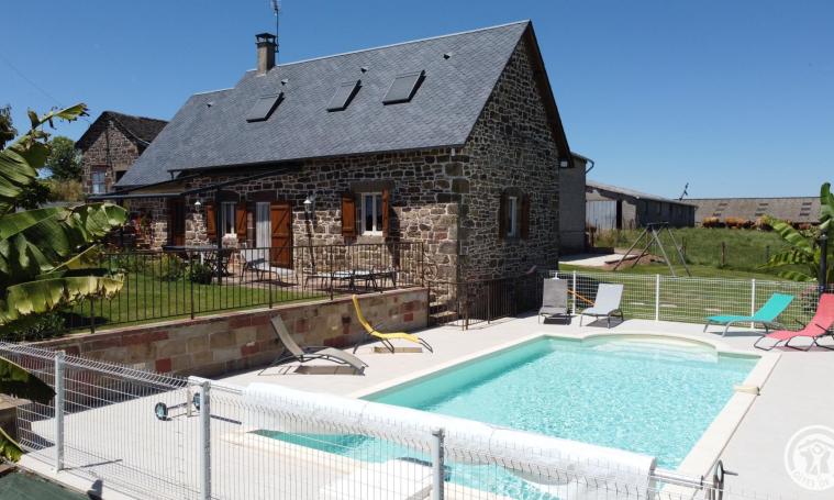 At the end of a road, bordered by meadows, a beautiful stone house with a magnificent private heated swimming pool (8X4X1.10 open June, July, August and September with barrier + alarm) overlooking lush green countryside. This character gîte is located close to Collonges-la-Rouge, Turenne, Carennac and Martel, classified as France's most beautiful villages, as well as Château de Castelnau-Bretenoux, Le Gouffre de la Fage, Beaulieu-sur-Dordogne etc. between Corrèze and Lot.