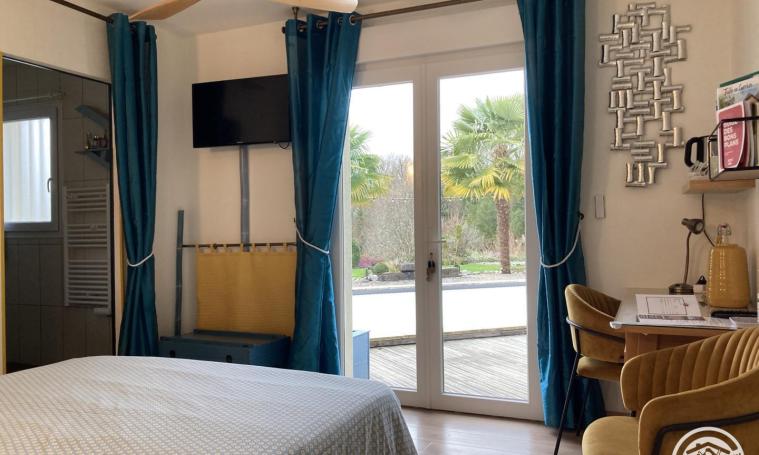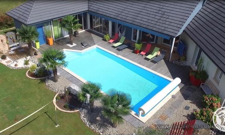 Located in the Corrèze region, just a few kilometers from the Dordogne and the Lot, and a quarter of an hour from Brive La Gaillarde, our garden, terrace and nature rooms will let you enjoy a moment of relaxation in the midst of lush greenery. Stop off for a break on the way to your vacation destination, or take advantage of several days to combine relaxation, sport and sightseeing. Eric and Magali will always welcome you with a smile and the desire to make your stay a special one. We welcome you to our contemporary-style single-storey house. The vegetable and ornamental gardens, the swimming pool heated from May to the end of September and the terraces offer a relaxing setting. The grounds and parking area are enclosed. The garage is available for motorcyclists. A 7.5 KW electric vehicle charging station is available on site.
