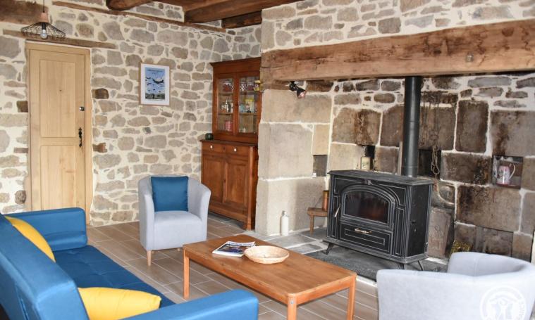 This charming stone house, typical of the Corrèze region and dating from 1836, has been carefully renovated and tastefully decorated. Situated in the heart of the countryside, in a small Corrèze hamlet, it benefits from a peaceful setting, close to the forest. It is not far from the magnificent Dordogne and Doustre valleys, offering a setting conducive to serenity.