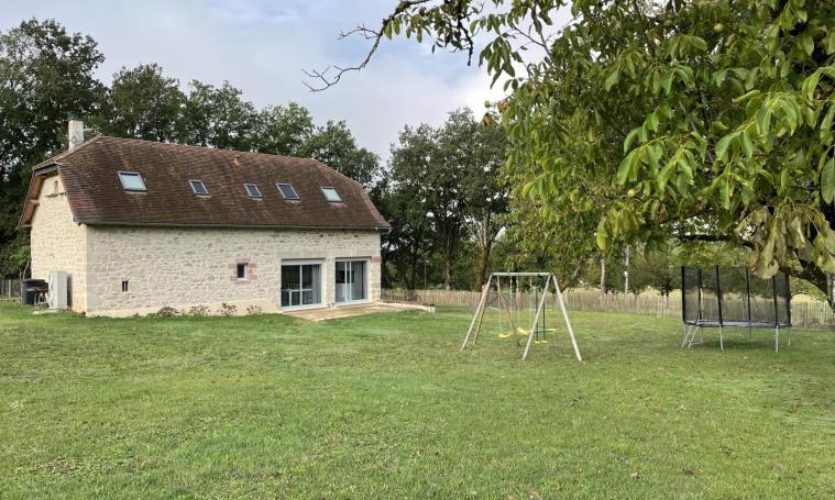This superb, fully-renovated Corrèze-style house is set in a large, fenced plot in the heart of the countryside. Very luminous with its large openings, it offers a 70 m2 ground floor living room including an open kitchen with an island bar, a dining room and a relaxation area with two sofas and two armchairs, a television and a separate toilet. Upstairs, you'll find a bedroom with a 140 cm bed, two bedrooms each with a 140 cm bed and a 90 cm bed, a bathroom with a large shower and separate toilet. A relaxation area with a double sofa-bed, table and television completes the layout. Two terraces with garden furniture let you enjoy the calm, unspoilt countryside.