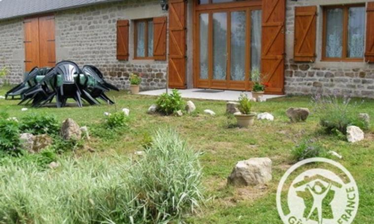 Superb, tastefully converted traditional barn set in 2000 m² of enclosed land planted with trees. 3 bedrooms (3 single beds, 2 double beds), living room with kitchenette, microwave, sitting area, wood-burning stove (100? per stere), DVD player, electric heating, 2 shower rooms, 2 WCs. Tourist tax: 0.90 ?/day/adults aged 13 and over.