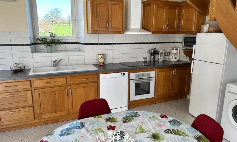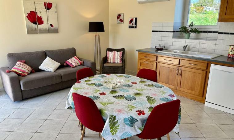 Completely renovated stone house for up to 6 people, comprising on the ground floor: a large living room, dining room with open-plan, well-equipped kitchen, and a 2-bed sofa bed.upstairs: a double bedroom separated by a removable partition, with 2 double beds, a bathroom with shower and separate WC.enjoy the peace and quiet of the countryside on the shaded terrace with garden furniture.