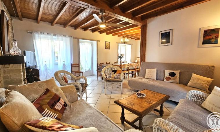 Bright, spacious, restored detached gîte, terrace, enclosed space and lawn, ping-pong table. In the heart of the green countryside, apple and raspberry orchards. A play area for the little ones. Heating: 20?/day. Ideal for family reunions or get-togethers with friends. In a quiet setting, a private pond surrounded by 8 hectares of greenery and woodland, with children's activities, tree house, slide, swings and pedalos, attracts anglers and walkers alike. Numerous hiking and mountain bike trails let you discover a rich and varied heritage. If you love nature and peace and quiet, come with your family or friends to recharge your batteries in this pretty corner of the Limousin. Sheltered picnic area by the pond.