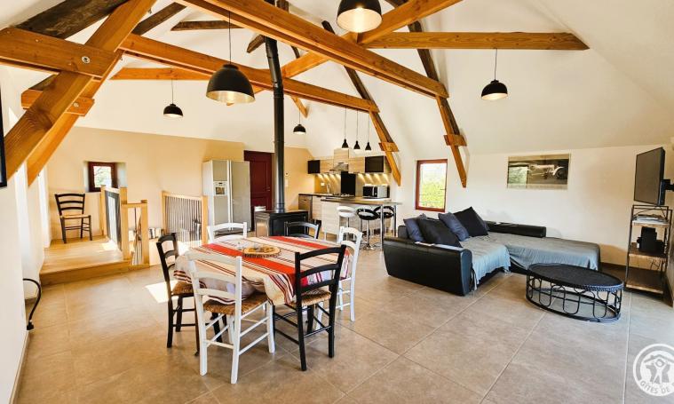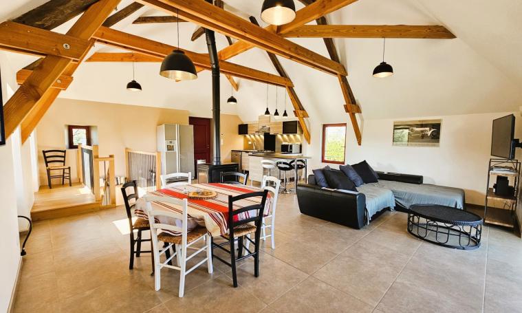 On the edge of a little ridge road with very little traffic, the gîte is located in an old house renovated to a very high standard, with a spacious living room, large terrace and balcony, swimming pool and superb 360° views.
