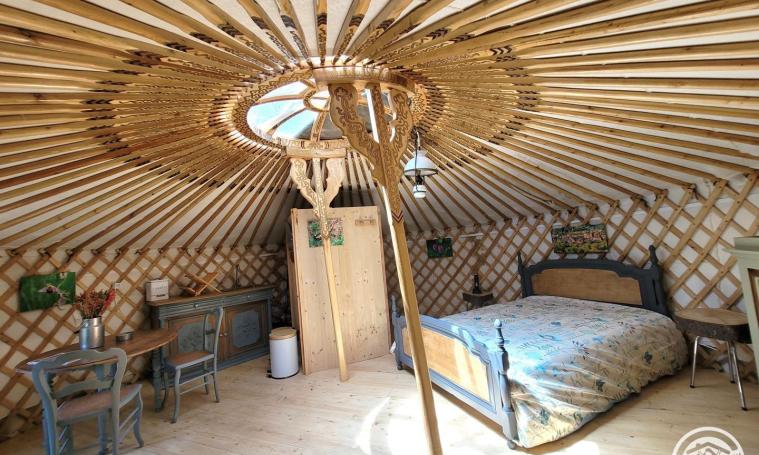 An authentic Mongolian yurt has been handcrafted to ensure perfect solidity. It is therefore unique. Between Turenne and Collonges la Rouge, the yurt was installed in a wood on a terrace. The Joulebois yurt features a kitchen and shower area inside. Dry toilets and an outdoor kitchen complete the layout. An unusual place to enjoy nature to the full. The hosts of this gîte have applied a sustainable tourism and slow tourism approach. Furniture and objects have been collected and transformed to embellish the accommodation. In the heart of nature, totally secluded, in the cool of the oaks, with no vis-à-vis, no wifi and no TV, come and enjoy the stars. Nearby tourist sites: Turenne, Collonges la Rouge, Curemonte, Loubressac, Autoire, Carennac, Beaulieu, Argentat, Cave de Branceilles, ...