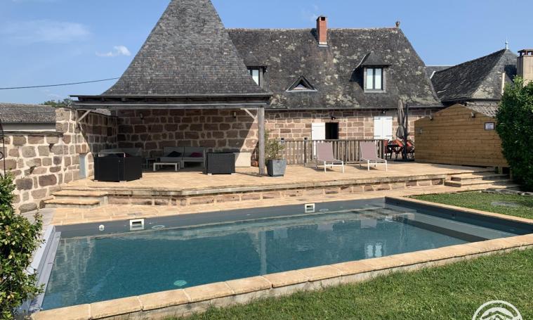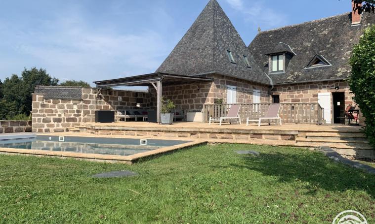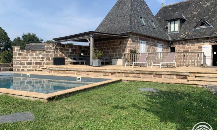 A late 18th-century farmhouse built of typical Corrèze stone, our house is located at the gateway to the Dordogne and not far from the Lot. The village of Allassac (3km away) offers all local shops and services. On the unoverlooked garden side, you'll find a wooden terrace dedicated to family meals, as well as a large stone terrace with a lounge under a pergola overlooking the pool and a magnificent unobstructed view of the garden and the Vézère valley. The swimming pool (8mX4.5m X1.65m deep) is equipped with an underwater deck and secured by an electric shutter, offering relaxation in heated water from early May to late September. For your comfort, the house is equipped with private parking, a Weber barbecue, a gas plancha, a fireplace with open or closed hearth, a ping-pong table, a separate TV lounge, indoor and outdoor games for children and adults, a ...
