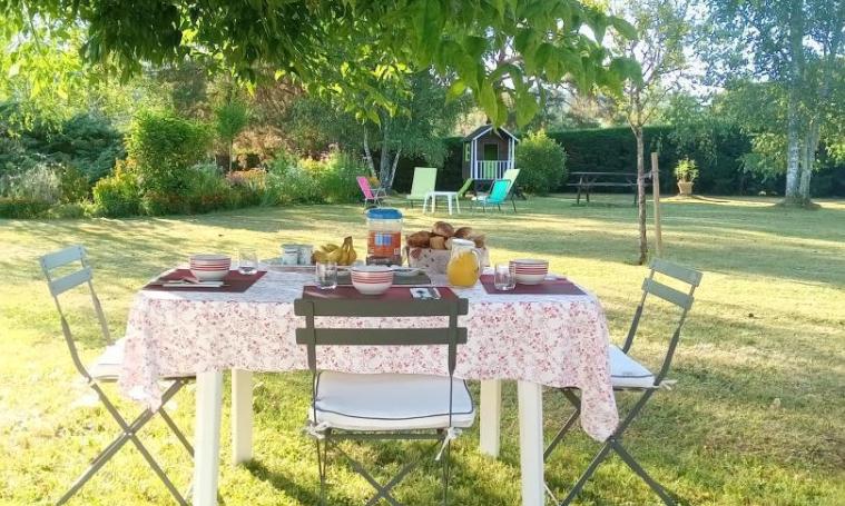 Near BRIVE and TERRASSON, 4 km from A89 exit 18. In a quiet, well-kept setting, we offer you ONE BEDROOM WITH SUITE on one level, with its own entrance. The terraces and large shady garden invite you to relax and unwind. Between Corrèze and Dordogne, the many tourist sites will enchant you: Lascaux, Sarlat, Dordogne Valley, picturesque villages, lake with supervised swimming, castles, caves... Breakfast on the terrace or in the dining room. Possibility of picnics on site and restaurants in the small tourist town of Terrasson. Pets allowed subject to reservation (rate 3 ? per night). Secure parking & easy access. YOU WILL APPRECIATE: the freshness of your accommodation in a stone house, your private living room, 2 ADDITIONAL BEDS INDEPENDENT from the master bedroom.
