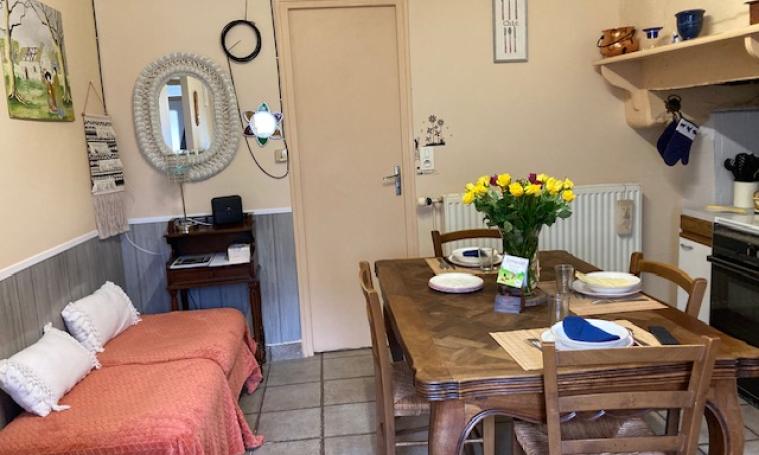 The convivial living room is equipped with fridge-freezer, oven, microwave, coffee-maker and all you need to cook like at home. A washing machine is also available. Free WIFI.