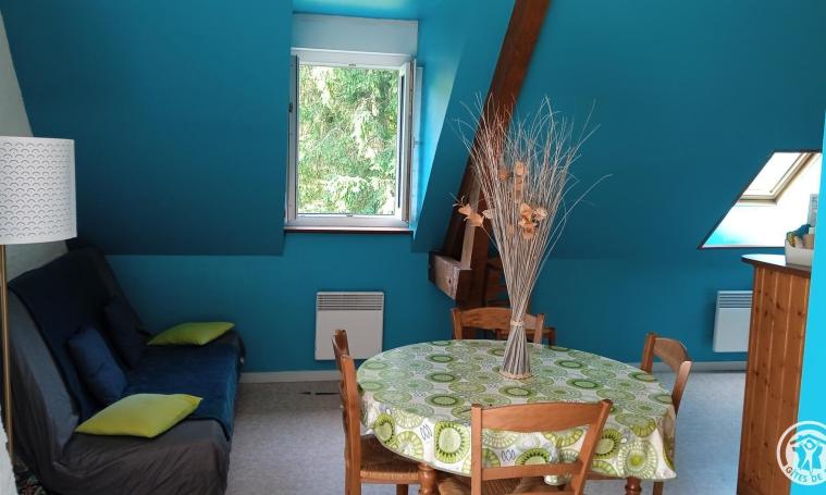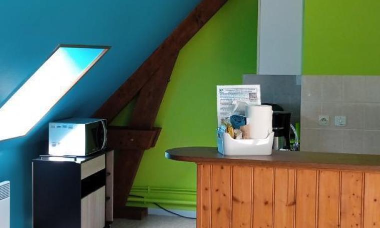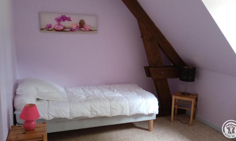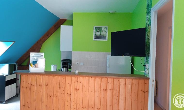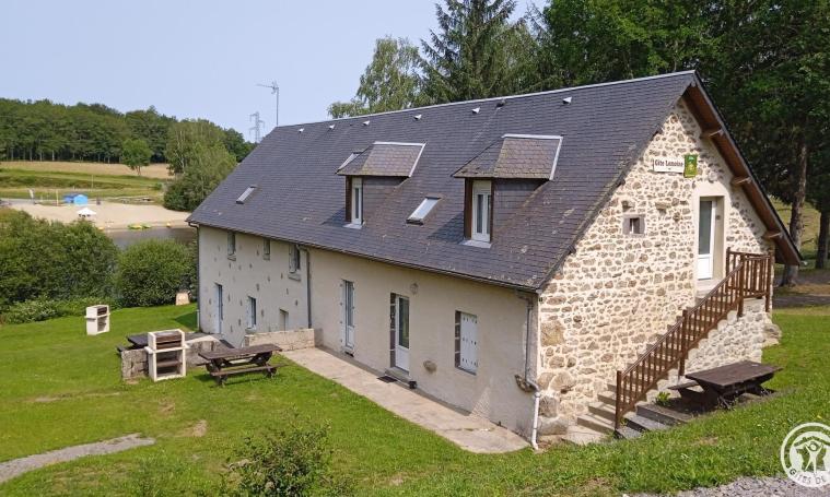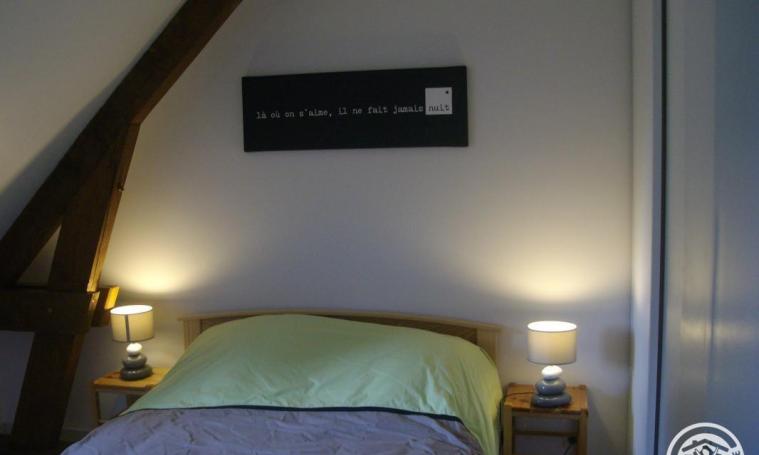 First-floor gîte with separate entrance and access via an outside staircase, set in a former farmhouse renovated into 5 gîtes, bordering a lake with shared, unfenced landscaped grounds (approx. 7,000 m2). Gîte adjoins gîte n°1, which is located below. This apartment comprises 2 bedrooms with 1 double bed (140cm) and 2 single beds (90cm) (which can be combined to form 1 double bed (180cm)). Living room with sofa bed and fully-equipped kitchen, dishwasher and washing machine. WIFI-4K TV. A cleaning kit with eco-responsible products is provided. Small terrace with bench and outdoor table. Barbecue. Free baby equipment on reservation. Pets accepted under owner's responsibility, with respect for the gîte and other residents.
