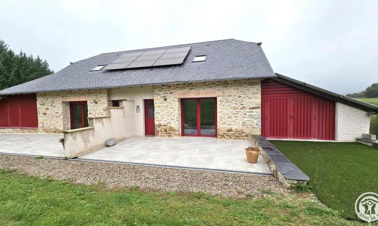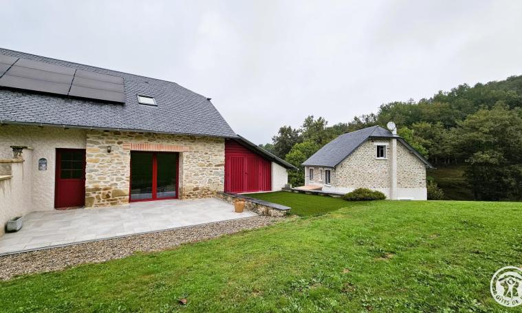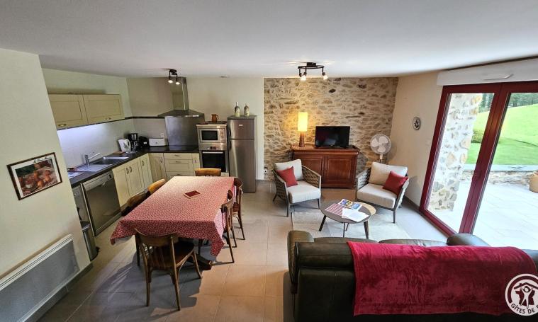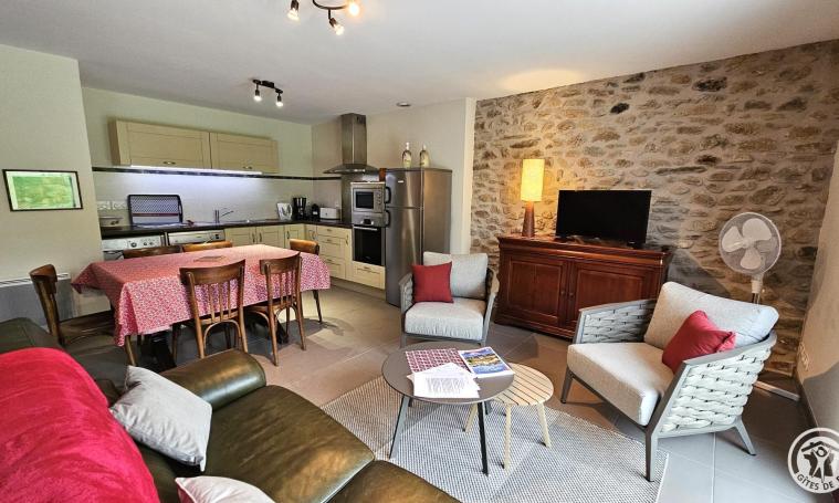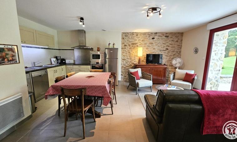 Onde Claire" gîte in unspoilt surroundings near a stream and waterfall. On garden level, large living room with fully-equipped modern kitchenette, 1 bedroom (bed 160), shower room and separate toilet. Upstairs, large bedroom (bed 140) and 1 bedroom with 2 twin beds