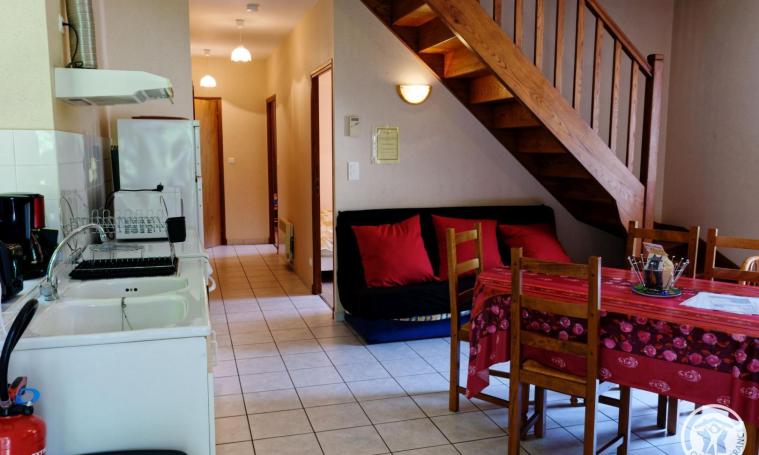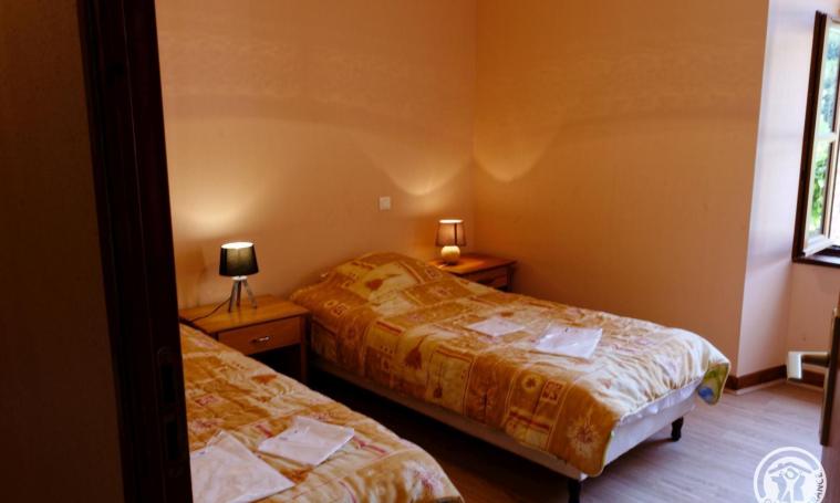 Lower part of building rented year-round (separate entrance). 400 m² grounds with children's play area. 2 bedrooms (2 single beds, 1 double bed), living room with kitchenette, small freezer, electric central heating. Supervised swimming pool nearby in July and August. Tennis court and pétanque. Bar-restaurant in the village from April to November. Altitude 260 m.