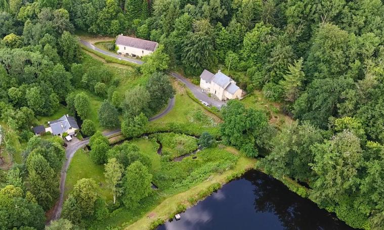 The setting is exceptional: a quiet little road, running water, waterfalls, a pond surrounded by forests and, finally, the recently renovated mill. This idyllic spot is in the heart of the Parc Naturel de Millevaches en Limousin, just a few kilometers from Chamberet.