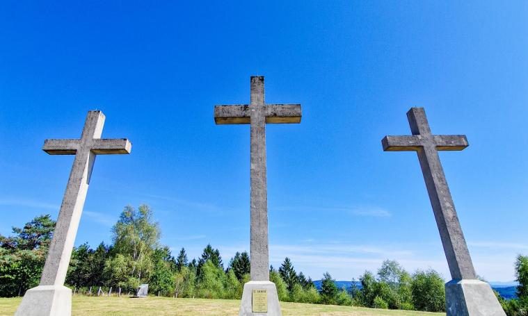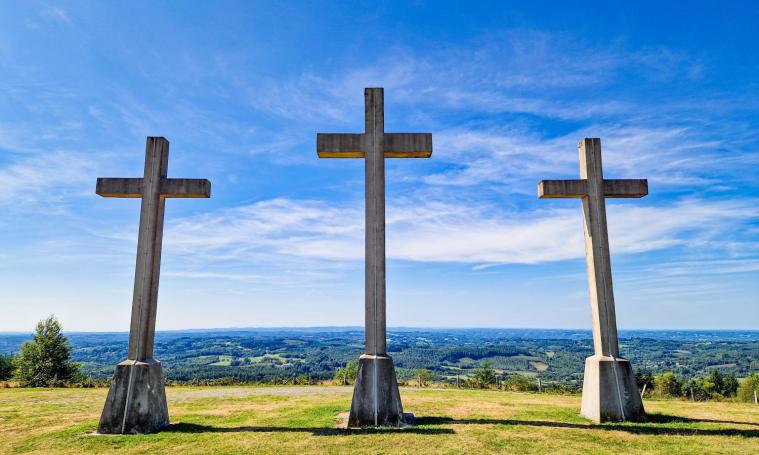 At an altitude of 820 m, the Puy de Sarran, marked by its triple calvary, takes the form of a conifer-covered dome. It lies between the Pradines fault to the east and the Treignac fault to the west. From the summit, there's a wide view over the Corrèze and Auvergne mountains.