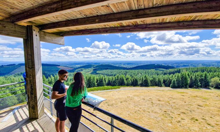 The highest point in the Corrèze at 977 metres, Mont Bessou offers a spectacular panorama of the wild landscapes of the Millevaches plateau. Perched at its summit, the 26-metre-high panoramic tower invites you to climb its 136 steps to enjoy a view at an altitude of over 1,000 metres.