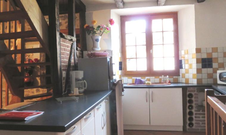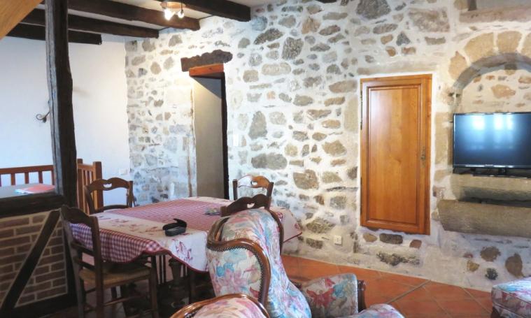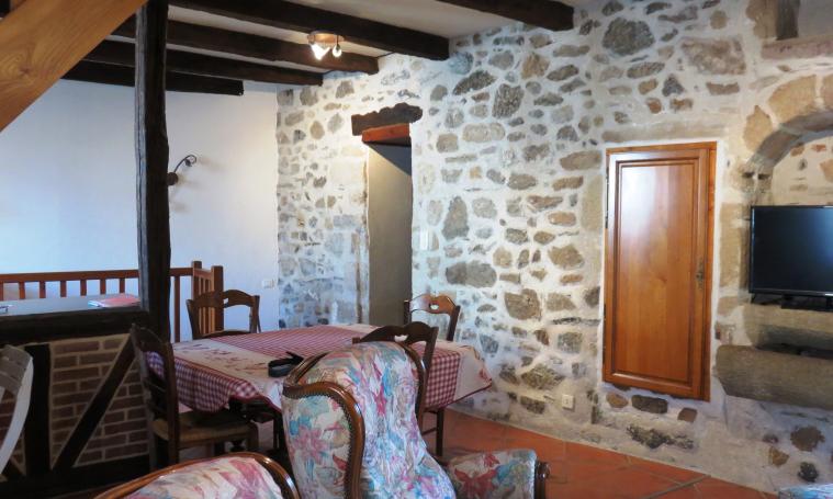 1st floor: fully-equipped kitchen (crockery, oven, fridge, kettle, etc.) opens onto a cosy living room, where original stonework and a cozy fireplace create a typically Corrèze atmosphere. This level also includes a separate toilet and a small, cosy balcony for meals for two.