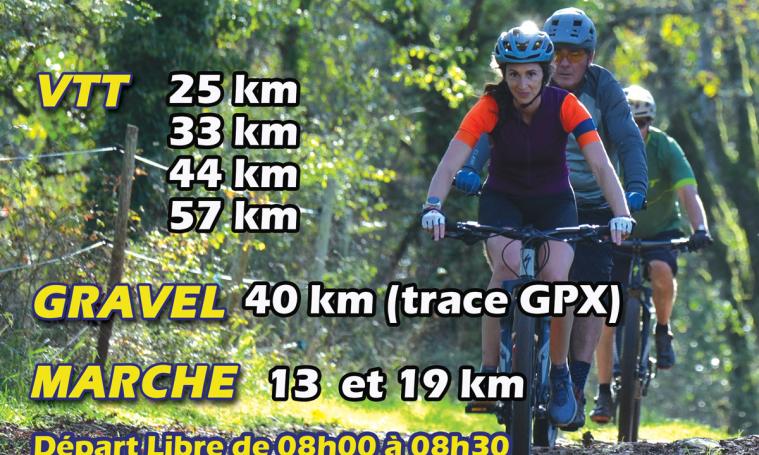 4 parcours de VTT : 25km - 33km - 44km - 57km