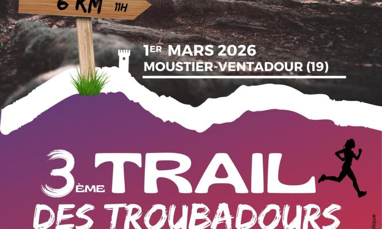 Rendez-vous le dimanche 1er mars 2026 à Moustier‑Ventadour pour le Trail des Troubadours, un parcours 100% convivial au cœur de la Corrèze.