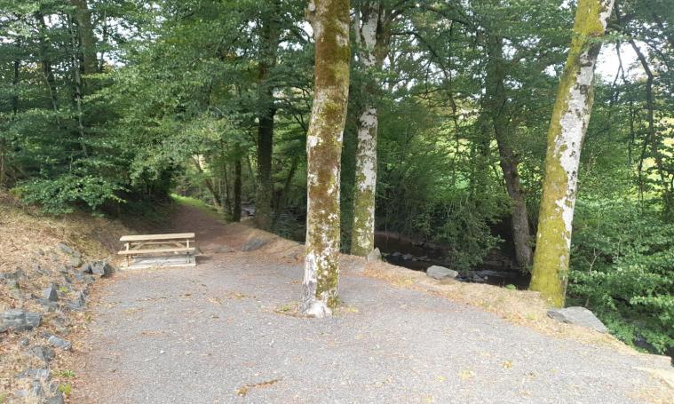 Table de pique nique au bord de la rivière la Soudaine à deux pas du village de Soudaine Lavinadière et de son Prieuré médiéval en accès libre toute l'année.
