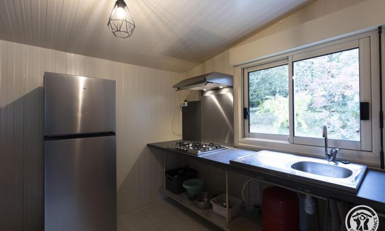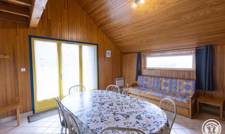 Cette location se compose d'une spacieuse pièce de vie, agrémentée d'un canapé convertible pouvant accueillir deux personnes, d'une télévision, d'un coin salle à manger et d'un placard pratique. La cuisine semi-ouverte est équipée pour répondre à tous vos besoins culinaires. Vous y trouverez également une salle d'eau, dotée d'une douche et d'un lavabo, ainsi que des toilettes séparées pour plus de confort. La chambre parentale, est équipée d'un lit double et dispose d'étagères pour un rangement optimal. Une mezzanine unique vous offre la possibilité d'accueillir jusqu'à quatre lits simples, idéale pour les familles ou les groupes. À l'extérieur, une belle terrasse, parfaite pour profiter des journées ensoleillées, est aménagée avec une table et des chaises de jardin, des transats confortables et un barbecue, pour des moments de convivialité durant la belle saison. Le prix ne comprend pas : chauffage, électricité, draps, linge de toilette