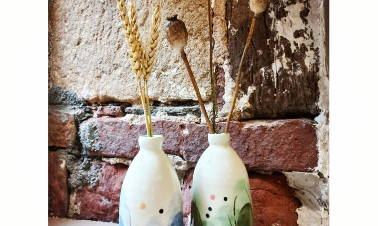 Je fabrique de la vaisselle. Tout est fait sur place: du tournage à la décoration, ainsi que les cuissons.
