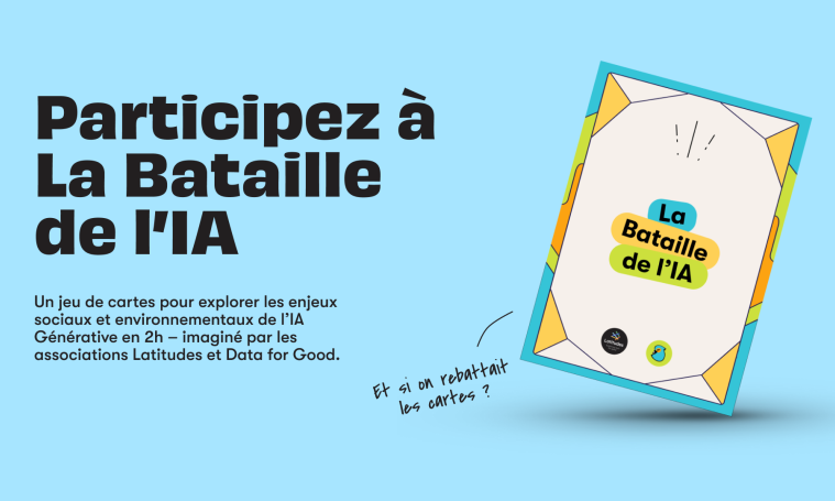 Entrez dans La bataille de l’IA, un jeu immersif pour explorer les grands enjeux des intelligences artificielles génératives ! À travers une approche ludique et participative, vous découvrirez comment ces technologies transforment notre rapport à l’information, à la création et à la société. Fiabilité des contenus, respect des données personnelles, propriété intellectuelle, biais algorithmiques, impact environnemental… chaque manche du jeu permet d’en débattre, d’apprendre et de mieux comprendre les défis que soulève l’IA aujourd’hui. Un atelier dynamique pour réfléchir ensemble à l’avenir du numérique !