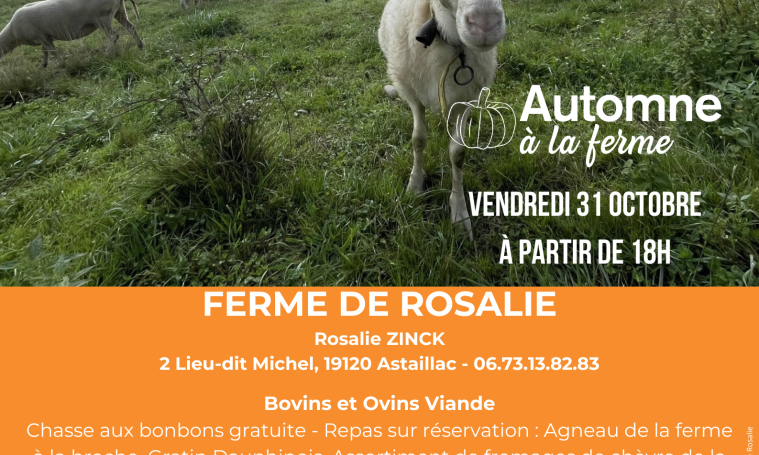 Chasse aux bonbons à partir de 18H. Repas sur réservation : Agneau de la ferme à la broche, Gratin Dauphinois, Assortiment de fromages de chèvre de la ferme Pampille et Cabri, Desserts. Hors réservation : Planche Apéro. Animation Musicale Années 80. Soirée déguisée !