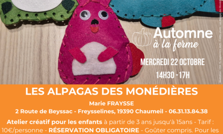 Atelier créatif pour les enfants à partir de 3 ans jusqu'à 15ans. Tarif = 10€/personne. Goûter compris. Pour les jeunes enfants accompagnés, l'entrée d'un adulte est offerte. Chaque participant repart avec sa création.