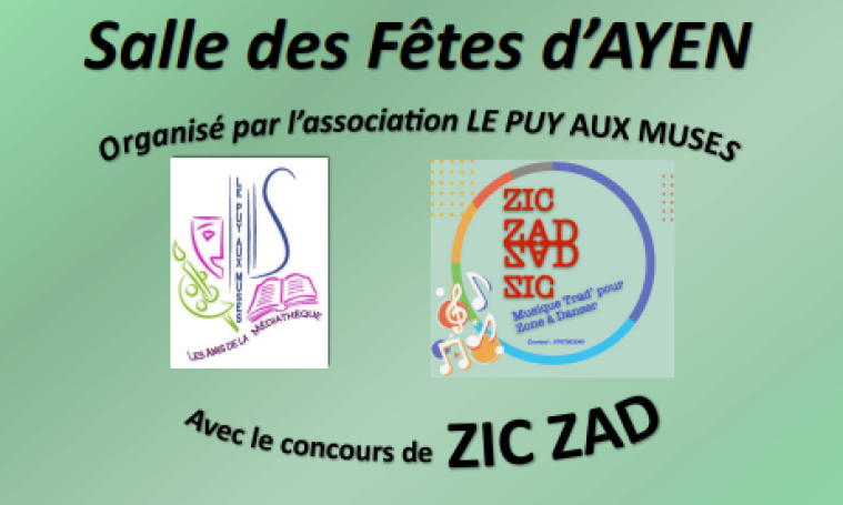 Le puy aux muses vous propose de participer à un bal trad vendredi 24 octobre à 19h, salle des fêtes d'Ayen. Il sera animé par Zic Zad