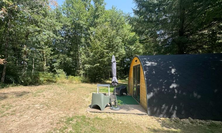 Nos nichoirs (Pods) en lisière de forêt, portant le nom de certains oiseaux présents au Domaine de Lallé, sont entièrement équipés et aménagés pour 4 personnes. Dans Le Coucou Gris, qui dispose d'une terrasse avec vue sur la forêt, vous trouverez un lit double et, dans l'espace de vie, un confortable canapé-lit. Une cuisine privée est équipée d'une plaque de cuisson à deux feux, d'un réfrigérateur et, bien sûr, d'une machine à café et d'une bouilloire. Vous y trouverez également des toilettes et un lavabo ; les douches sont situées dans notre tout nouveau bloc sanitaire.