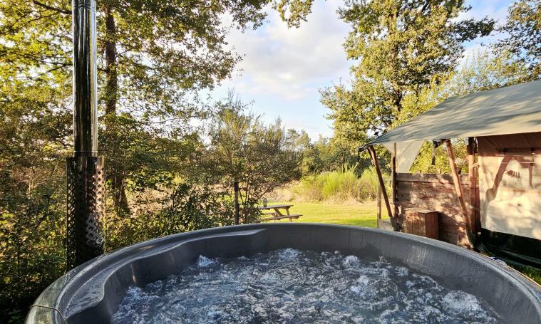 2 tentes Safari avec bain à remous privé, parfaites pour se détendre sous les étoiles