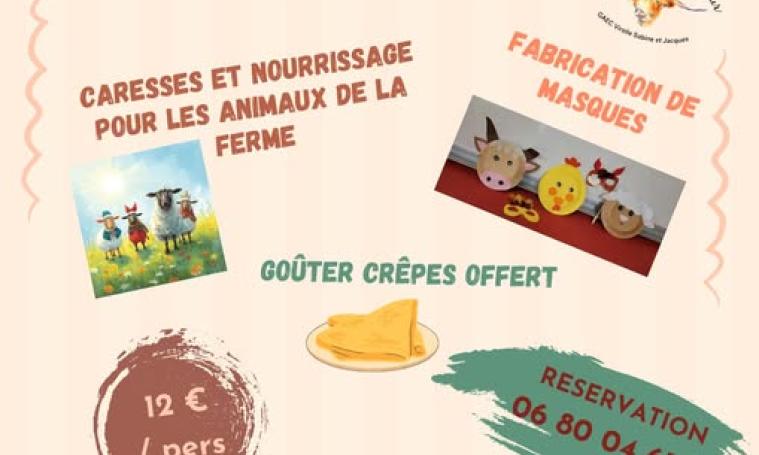 Caresses, nourrissage des lapins et du cochon Toupinou, fabrication de masques et crêpes, un joli programme.
