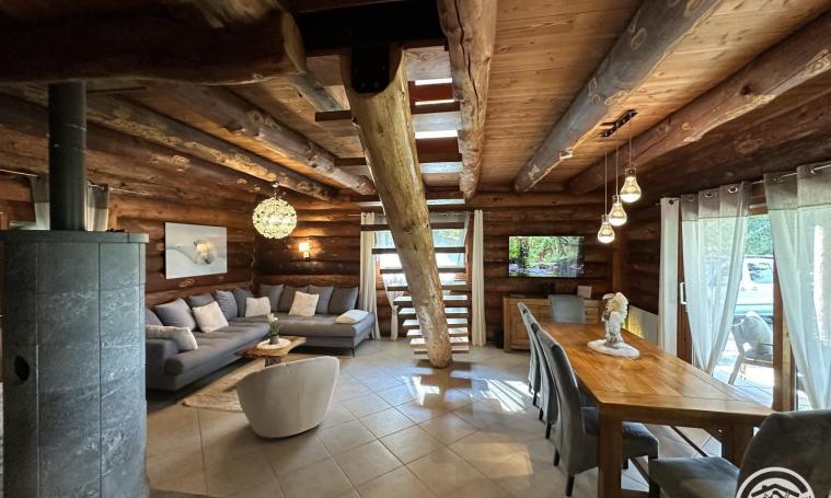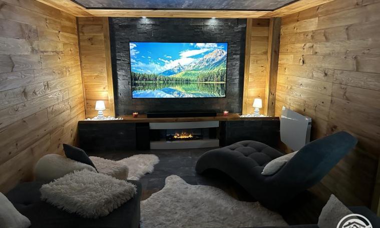 Le chalet dispose d'une grande pièce de vie avec un poêlé à bois ouverte sur la cuisine aménagée et équipée donnant sur une terrasse. Vous trouverez également une chambre équipée d'un canapé lit deux places à ce niveau ainsi qu'une salle d'eau avec wc privatif. L'étage se compose d'une salle d'eau, d'un wc, d'une salle de bain et de trois chambres disposant chacune d'un lit double. Un lit supplémentaire est à disposition dans l'une des chambres. Le sous-sol de la maison réserve bien des surprises avec un billard, un babyfoot, une salle d'eau avec wc et surtout une salle de cinéma avec un grand canapé ! A l'extérieur, une aire de jeux pour enfant et un grand terrain sont à disposition. TOUT INCLUS