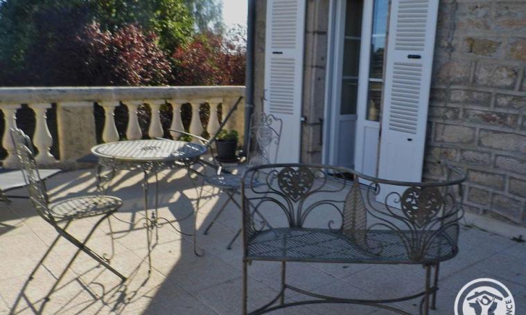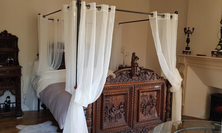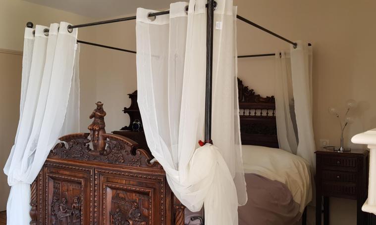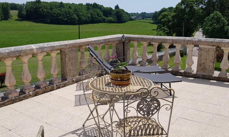 La chambre d'hôtes se situe au 1er étage et dispose d'un lit à baldaquin en 160, d'un coin salon avec télévision, d'une salle d'eau avec WC et d'une terrasse panoramique avec vue sur la campagne de la Xaintrie. Seulement sur réservation et selon disponibilité, nous pourrons vous servir un repas afin de savourer une pièce de bœuf issue de notre production.