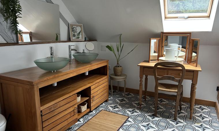 - Chambre Fleur : 1 lit 140 et 1 lit 90 , salle d'eau spacieuse comprenant une double vasque