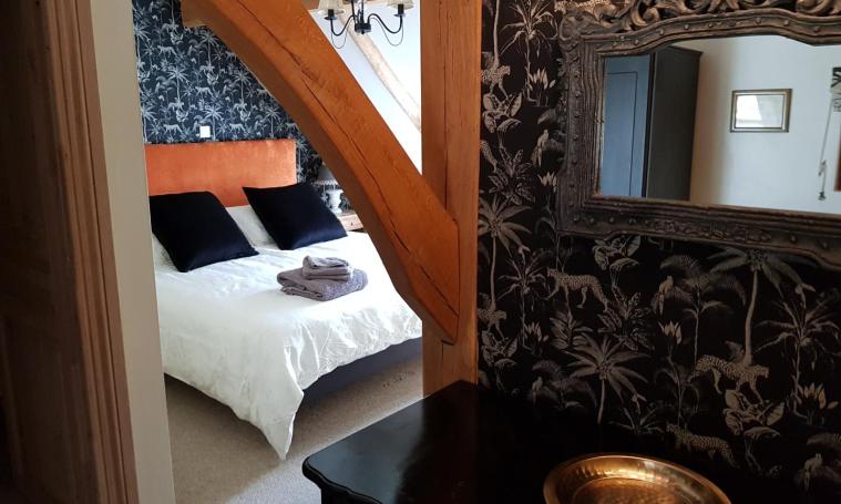 Bienvenue dans notre petit coin de paradis! Les 5 chambres d'hôtes ont été créées grâce à la rénovation de qualité et de bon goût d'une magnifique grange. Idéales pour les groupes et les familles jusqu'au 11 personnes, les grandes salles à manger et de séjour vous permettent d'être ensemble, tout en laissant à chacun sa propre chambre et son propre espace. Il est aussi possible de louer cette propriété comme un gite indépendant. Toutes les chambres ont des salles de douche privées, des literies confortables et sont décorées individuellement avec style et charme. Le salon du premier étage a des poutres apparentes et un grand poêle à bois, et des fenêtres donnant sur le lac et les jardins. Tout est conçu pour le confort. À l'extérieur, il y a un beau grand parc avec des terrasses, une piscine et un étang privé avec des nénuphars. Situées dans une belle campagne, Chateauret est un havre ...