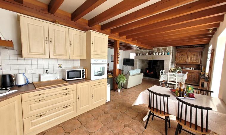 Dès le pas de la porte, vous découvrirez la grande pièce de vie avec cuisine aménagée ouverte, le salon et la salle à manger donnant sur la belle terrasse fleurie. Au même niveau se trouve également une buanderie avec lave-linge et wc. Vous profiterez de la chaleur du poêle à bois pour les soirées d'hiver et du grand jardin fleuri de 1 280 m² avec une mare aux grenouilles. L'étage dédié à l'espace nuit se compose de 3 belles chambres et une salle d'eau avec WC. La première chambre présente un très grand lit en 160x200 cm, la deuxième un lit double en 140x190cm. La dernière chambre, parfaite pour des enfants, dispose de deux lits en 90x190 cm. Pêche à l'écrevisse à 80 m et troupeau de vaches. Vous pouvez garer votre véhicule dans un garage. Linge de lit, de maison et de toilette fournis. Bois fourni. WIFI Certaines options sont non comprises dans le prix (supplément à prévoir). Un lit parapluie ainsi qu'une table langer avec baignoire sont à votre disposition.