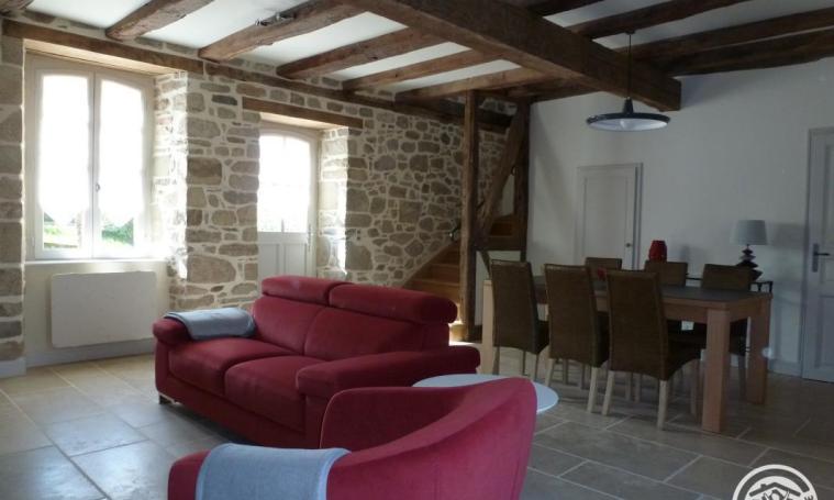 Rez-de-chaussée : séjour coin cuisine, coin salon, TV, poêle à bois, 1 chambre avec 1 lit 160, salle de bains, WC indépendant, à l'étage : espace détente avec télévision, lecteur DVD, 3 chambres (1 lit 160, 1 lit 140, 1 lit 90), salle d'eau et WC indépendant, chauffage électrique, cave, terrain clos aménagé avec un salon de jardin et plancha et un salon de détente. Pour votre confort, les draps, linge de toilette et de maison sont fournis. Le ménage de fin de séjour est compris.