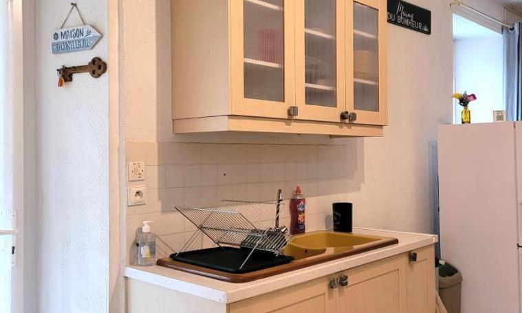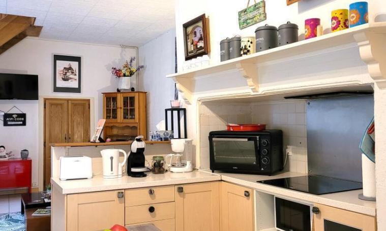 Cet hébergement se compose: Entrée à l'étage : Pièce de vie avec cuisine aménagée et équipée, salon/salle à manger, une chambre avec 2 lits simple "gigognes" de 90x190, une salle de bain avec WC suspendu. Au 2ème étage: une mezzanine avec bureau, fauteuil et jeux pour enfants, une chambre avec 1 lit double de 160x200. Terrasse, jardin et un parking privé gratuit. Un barbecue est mis à disposition. Dans le garage: lave-linge Wifi. Gîte non-fumeur