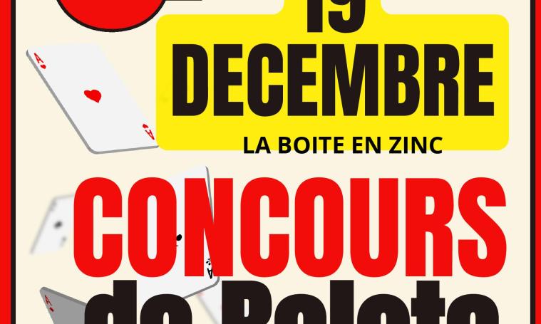 L'association Tuberculture de Chanteix organise le vendredi 19 décembre à 20 h 30 à la boite en zinc de Chanteix un CONCOURS DE BELOTE par équipe