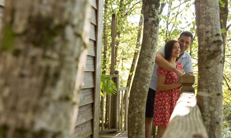 À votre arrivée, vous pourrez stationner votre voiture dans la propriété. Un escalier en bois vous mènera à la cabane perchée, harmonieusement intégrée au cœur des arbres. Une fois sur la spacieuse terrasse suspendue, une musique douce vous entoure et vous plonge directement dans une ambiance apaisante. À l'intérieur, la pièce principale se compose d'un salon/séjour chaleureux, agrémenté d'un canapé confortable, et d'une cuisine ouverte entièrement équipée. La chambre parentale vous offre un lit Queen size de 160 cm et une salle d'eau attenante avec une élégante douche à l'italienne. La grande baie vitrée s'ouvre sur la terrasse, où vous attendent un spa privatif et un sauna panoramique. À l'étage, une mezzanine avec deux lits de 90 cm offre deux couchages supplémentaires au tarif de 75 € par personne et par nuit. Tout est compris dans le tarif, y compris le petit-déjeuner. Chaque détail est pensé pour votre confort, votre bien-être et votre intimité, le tout dans un cadre insolite.