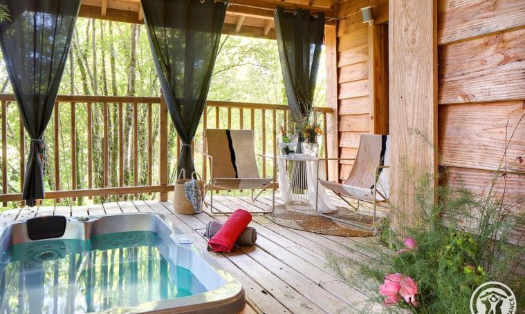 Nichée au cœur d'un bois privé à Saint-Mexant, en Corrèze, la cabane perchée Cyprès si Haut vous offre une expérience inoubliable. Accessible par un élégant escalier en colimaçon, cette cabane de 80 m², incluant une grande terrasse, allie charme naturel et équipements haut de gamme. Offrez-vous un moment de bien-être dans le spa et le sauna privatifs, situés sur cette terrasse à l'abri des regards. À l'intérieur, confort et modernité se côtoient : une suite parentale, une mezzanine pour les enfants, une cuisine entièrement équipée, un poêle à bioéthanol, la climatisation, une enceinte connectée, une télévision et le Wi-Fi. De nombreuses activités vous attendent : balades en forêt, pêche, canoë, équitation, et la découverte du château de Sédières et des charmants villages corréziens. Que ce soit pour une nuit insolite, romantique ou familiale, Cyprès si Haut est un havre de paix où le ...