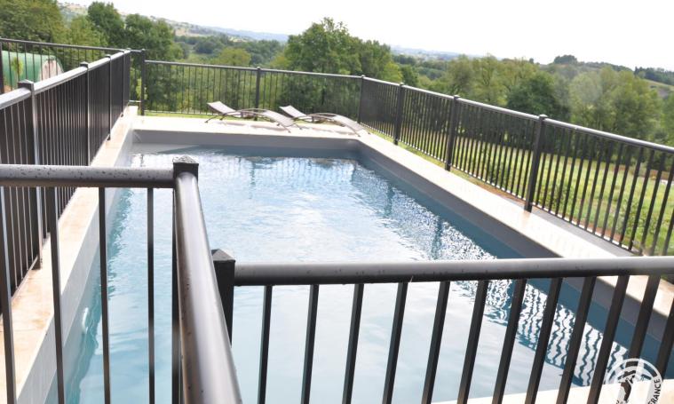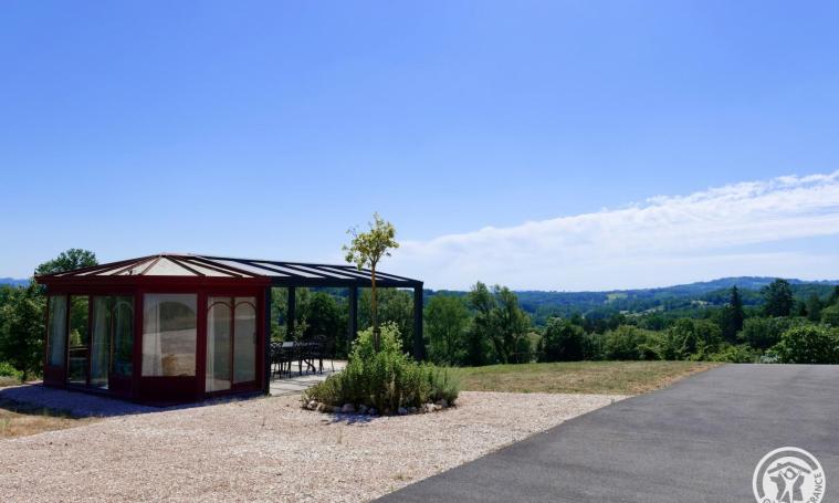 Grande maison en pierres de "brasier" rouge, sur un terrain dominant la vallée, permettant d'accueillir 12 personnes, vue magnifique. Piscine avec accès depuis la terrasse. La maison est dotée de tout le confort moderne, wifi dans toute la maison. Grand séjour, petit salon de lecture. Dehors, un espace détente abrité permet de prendre les repas à l'abri des intempéries, une partie close permet d'accueillir un couchage supplémentaire. Cette maison est idéale pour se retrouver en famille ou entre amis. Nombreux jeux à disposition : buts de foot - tir à l'arc - badminton - pétanque - ballons et ping-pong ainsi qu'un baby foot dans le garage
