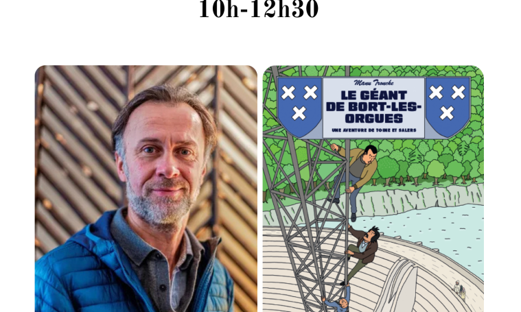 Manu Tronche revient en dédicaces avec sa récente BD, Le géant de Bort-les-Orgues. L'occasion d'échanger avec lui et de préparer Noël avec une belle dédicace dessinée.
