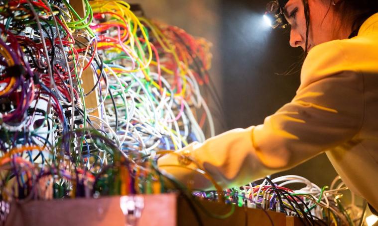 Hélène Vogelsinger est compositrice, sound designer, vidéaste et directrice artistique du label Microsmose. À travers une pratique singulière mêlant musique, image et architecture sonore, elle développe des oeuvres immersives et introspectives, profondément reliées au vivant. Elle explore, à l’aide de son synthétiseur modulaire, des lieux abandonnés ou isolés et y interprète ses compositions. Ces espaces deviennent des partenaires de création : porteurs d’énergie, de mémoire et de résonance, ils influencent sa manière de jouer, ses gestes et sa perception du temps.